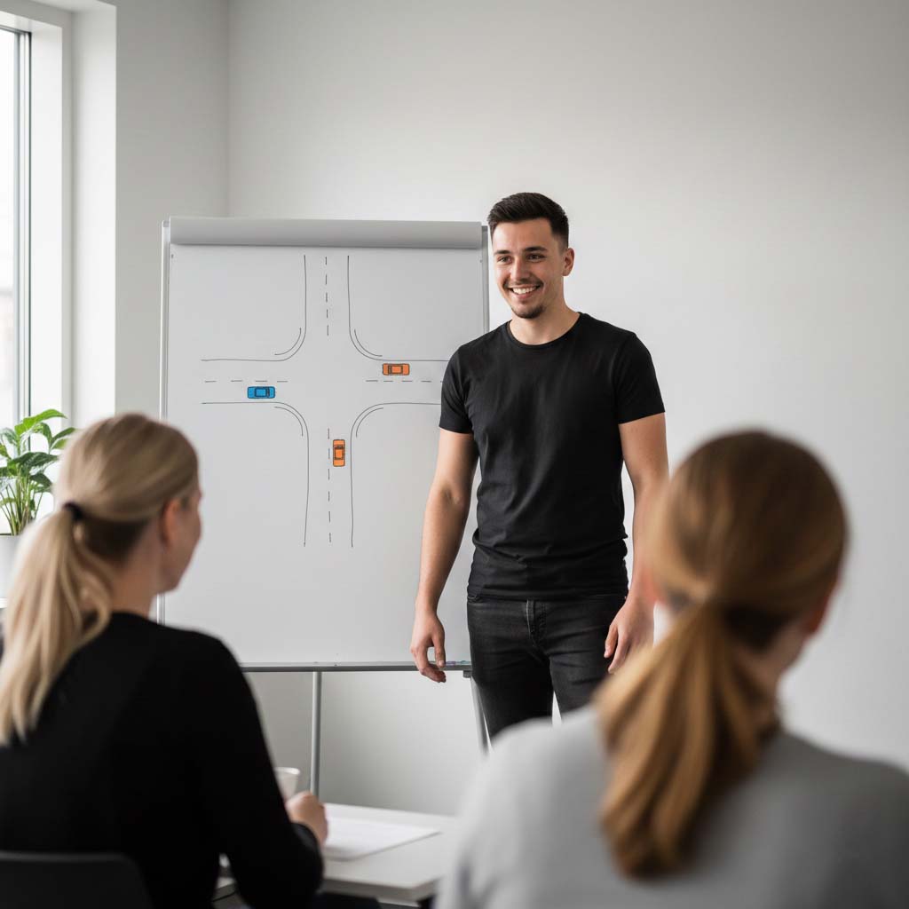 Vi är specialister på NPF-pedagogik. Det innebär att vi arbetar med extra tydlig struktur, lugn kommunikation och steg-för-steg-instruktioner. Vår utbildningsledare Alex har över 20 års erfarenhet och vi anpassar tempot helt efter dina behov.
